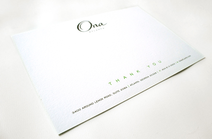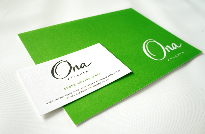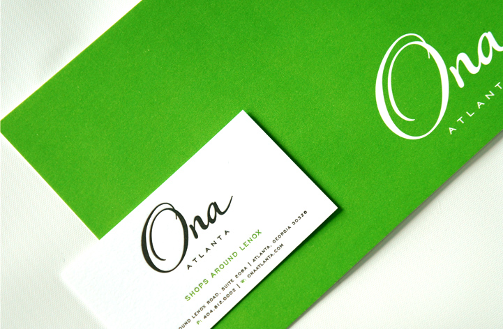 This soaps and scents boutique is located in Shops Around Lenox right next to Lenox Mall in Atlanta. With an exciting yet calming brand of neutrals they wanted a pop of neon green to catch the customer's eye. I assisted in drawing up the schematics for their exterior and interior signage, and also worked on their letterpress business cards as well as design of their gift bags, and thank you cards.